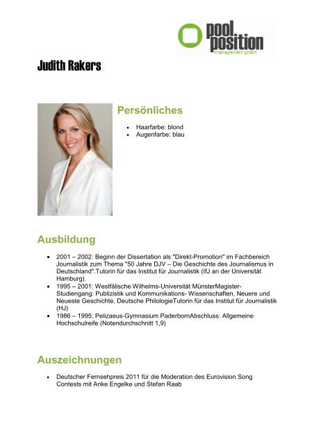 Judith Rakers 1995 / Judith rakers kam 1976 in paderborn als tochter eines physiotherapeuten und einer innenarchitektin zur welt.