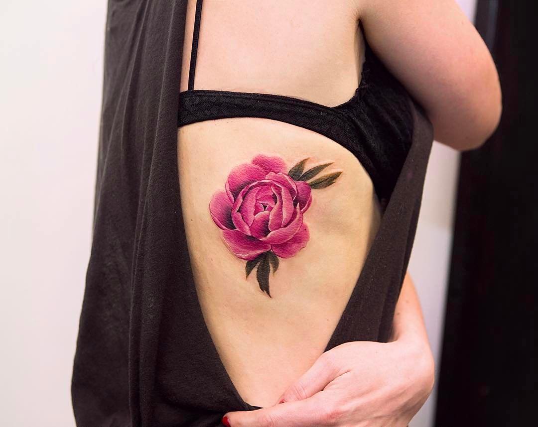 Tatuajes En Las Costillas Para Mujer Rosas - Tatuaje de rosa para mujer realizado por inferno tattoo barcelona.